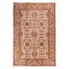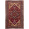 A combination of beauty in a chaotic form that raises questions in every viewer’s mind about why this carpet’s design is like this! This carpet is a combination of various patterns and designs that itself narrates another interesting aspect of Iranian carpet weaving art. Such carpets are called “Ornag” and this handwoven Ornag, sized seven quarters with 10978 knots and dimensions of 142 by 152 centimeters, is an artistic and antique piece crafted over a hundred years ago by talented Iranian weavers. Based on the intriguing history of this carpet, it’s worth mentioning that originally, this carpet wasn’t woven as a complete piece but in ancient times due to the absence of large-scale design papers, carpet patterns were woven on smaller carpets so that weavers could use them as a reference for pattern copying. This old Ornag is woven in Chaharmahal and Bakhtiari province, known from ancient times as one of the important centers of Iranian carpet weaving.