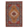 A Heriz handwoven carpet with code 90054, measuring 205 by 295 centimeters, showcasing a large medallion, bold patterns, vibrant colors, and geometric lines, is a characteristic feature of Heriz carpets that harmonize with both classic and even modern decor. This handwoven Heriz carpet is recreated with high quality and premium raw materials. Its dimensions make it suitable for use in large rooms, living spaces, and even reception halls. Its material of handspun wool and silk weft ensures exceptional finesse and durability. The captivating Heriz medallion and motif design, one of the most famous classic Persian carpet patterns, display the splendour of Iranian artistry. The natural dyeing process creates incredibly beautiful and shining colors in this carpet, and the harmonious coordination of these colors adds another artistic aspect to this carpet’s extraordinary beauty.
