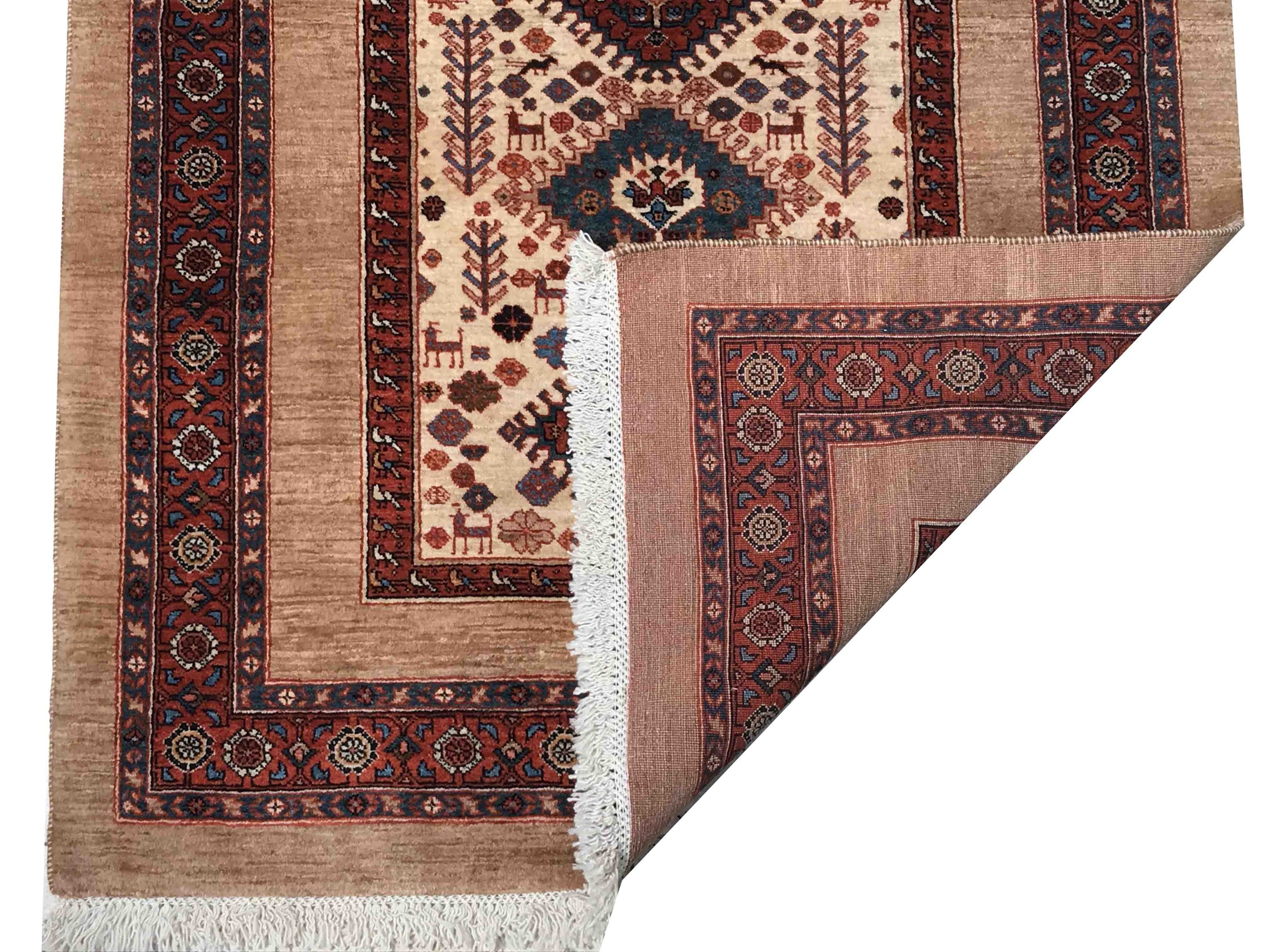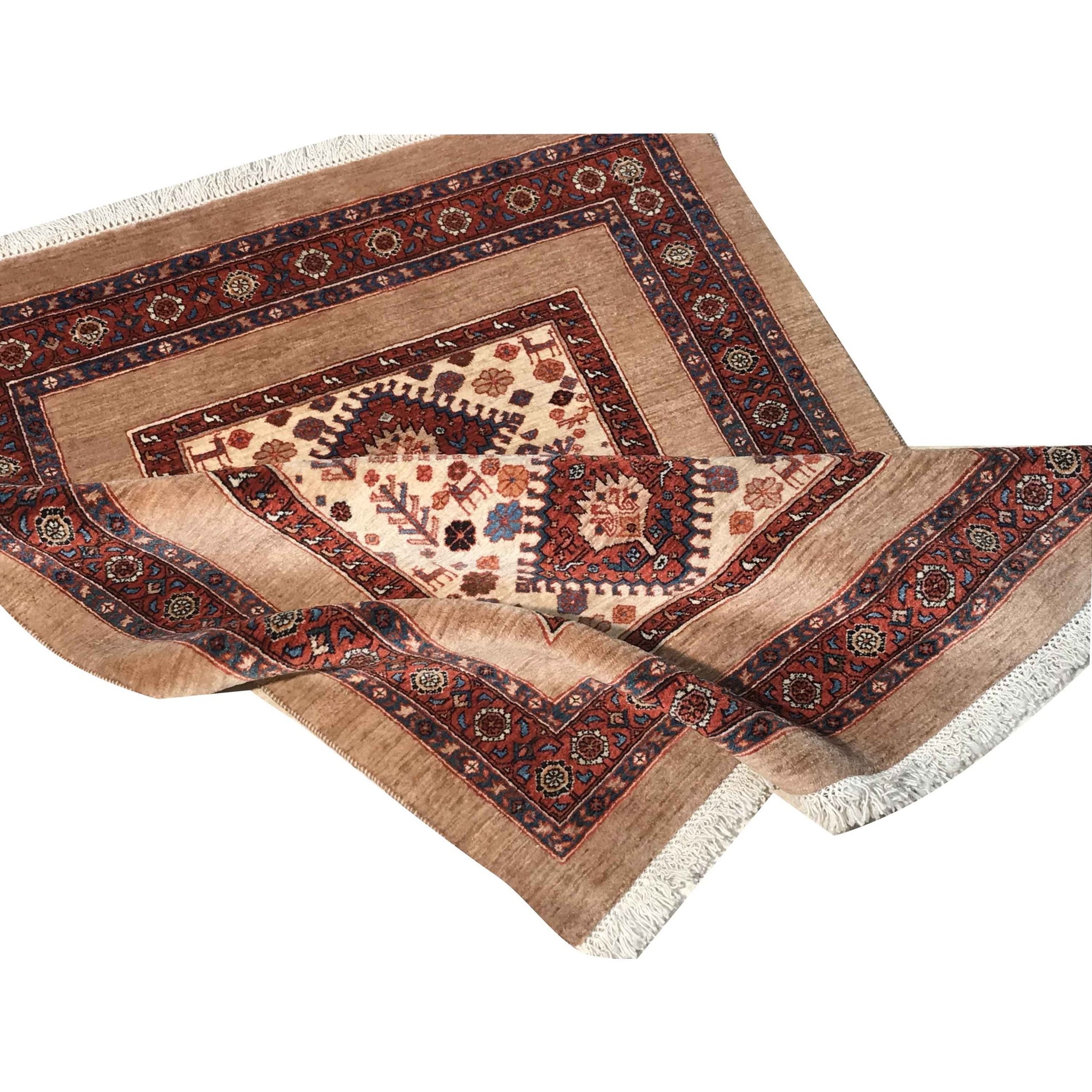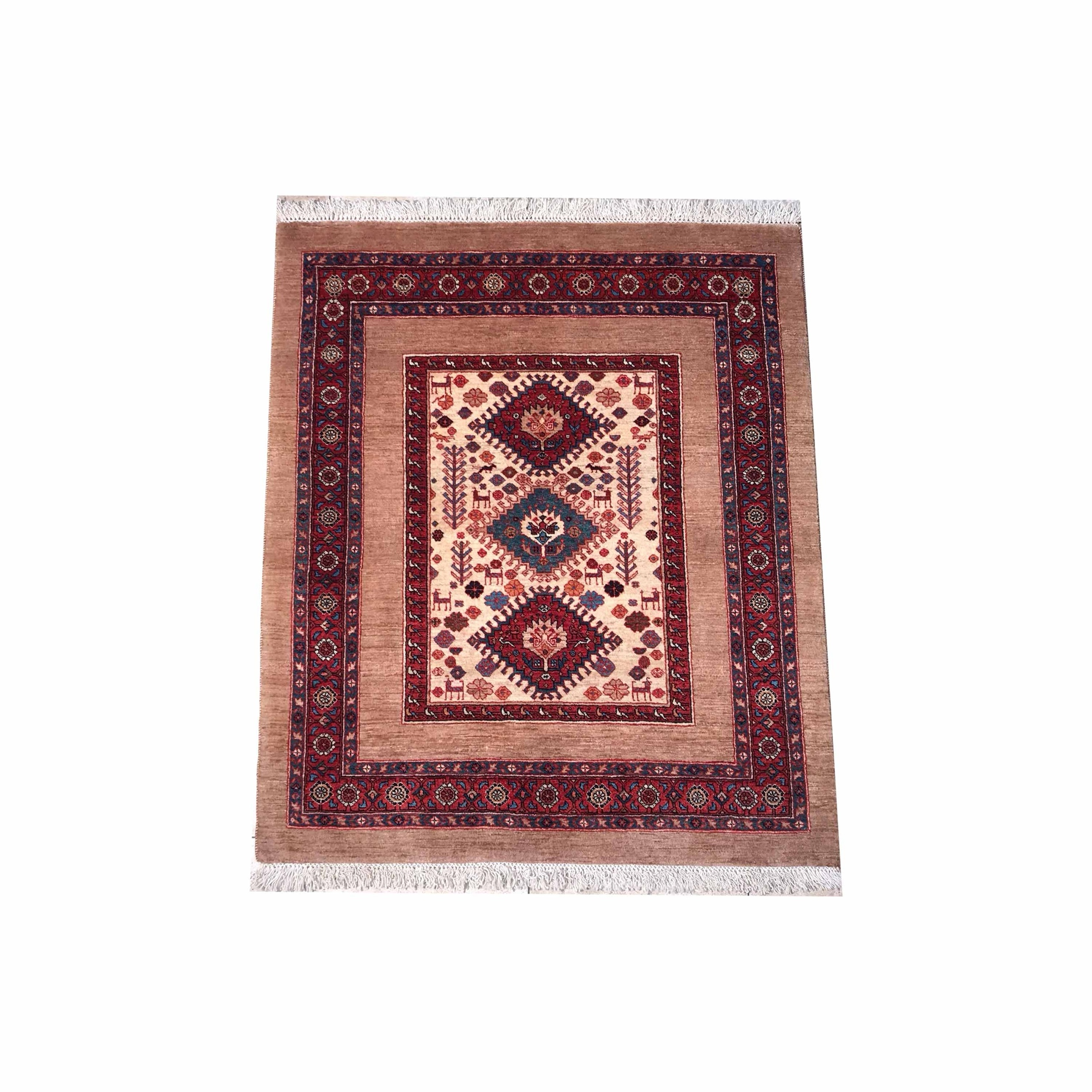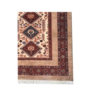 Its design showcases the popular and visually appealing medallion pattern. The rug’s natural and vegetable dyeing enhances its beauty and allure. Suitable for decorating living rooms, reception areas, bedrooms, and even workspaces, this rug’s fine handspun wool pile and wool warp offer a soft and luxurious feel, adding comfort to any setting.