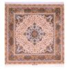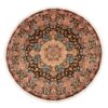 The art of carpet weaving in Tabriz is renowned for its long-standing history and high reputation. The combination of fine patterns with the Medallion (Toranj) design has brought about breathtaking beauty. Tabriz handwoven rug with product code 13604, measuring 250 by 250 centimeters in a circular shape, is a prominent artistic work from Iran woven in the historical and cultural city of Tabriz. This rug is made of wool, silk, and silk weft, and its design is “Novin Far.” Fine and detailed patterns in various beautiful colors on a cream background reflect the splendour of Iranian carpet weaving art. The weaving of a round rug itself is faced with numerous complexities; therefore, weaving such details on this rug requires high skills achievable only by skilled Iranian master artists. This rug is suitable for use in living rooms and reception areas to complement the beauty of your home.