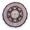 A rare and exceptional piece of art with a design by Master Salari and a 70-count knot density, turning your home into a luxurious palace with its stunning beauty. The handmade round Tabriz carpet with code 12504, measuring 205 by 205 cm, symbolizes the grandeur and splendor of Iranian art and culture. This carpet, woven from wool and silk with a silk warp, provides high softness and delicacy, adding unparalleled beauty and grandeur to your interior decor. A combination of vibrant and lively colors on a dark background, with precise details and traditional motifs, has doubled the majesty and brilliance of this carpet. The city of Tabriz has long been recognized as one of the main centers of carpet weaving in Iran, introducing skilled artists to the art community. This carpet, with its precise and orderly details, has been created by the most skilled Tabriz weavers.